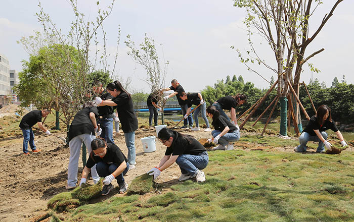 阳春三月,草长莺飞间,植树更当时!种植绿色、收获成长,B体育用实际行动为地球充“植”。 扶正苗木、挥锹铲土,铺开草皮、整齐排列,填实新土、提水浇灌,各个环节街接有序、配合默契,现场到处都是忙碌的身影以及劳动的欢声笑语,株株新苗昂然挺立,在和煦的春风中焕发勒勒生机与活力。